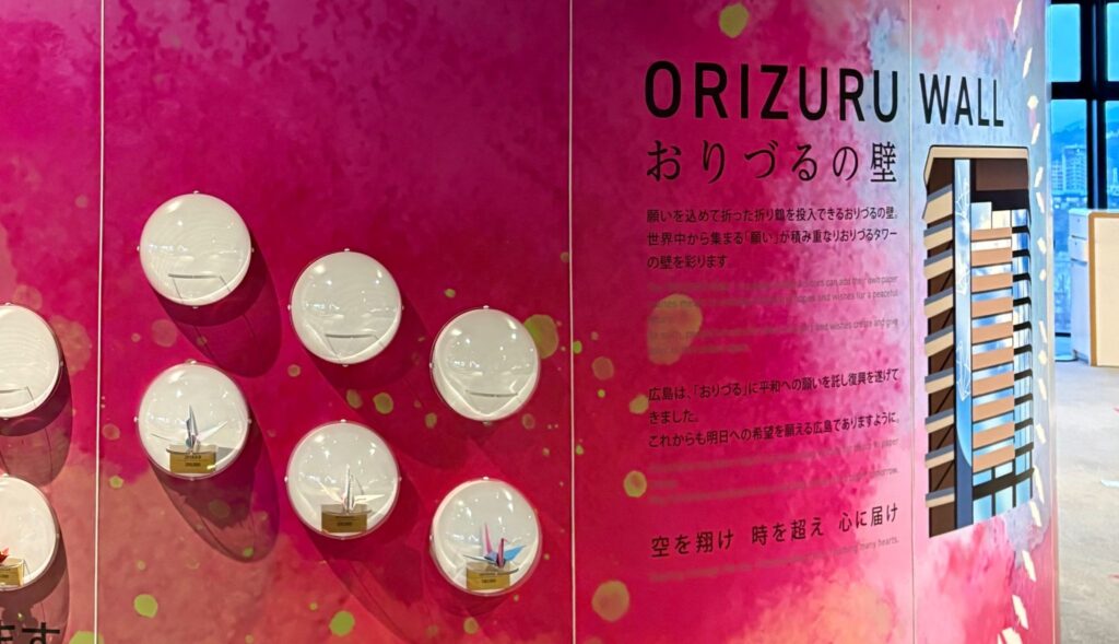 館内にある「おりづる広場」では、実際に折り鶴を折り、それをガラス張りの壁に投入することで「おりづるの壁」をつくるという体験ができます。無数の折り鶴が積み重なっていく様子からは、訪れた人それぞれの想いが少しずつ重なっていくのを感じられます。