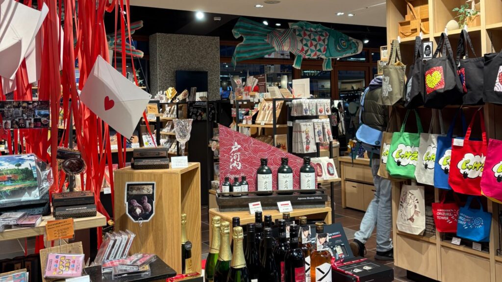館内には広島のお土産をまとめて見ることができるショップがあり、定番から少し珍しい商品まで幅広く揃っています。観光の最後に立ち寄る場所としてもとても便利です。