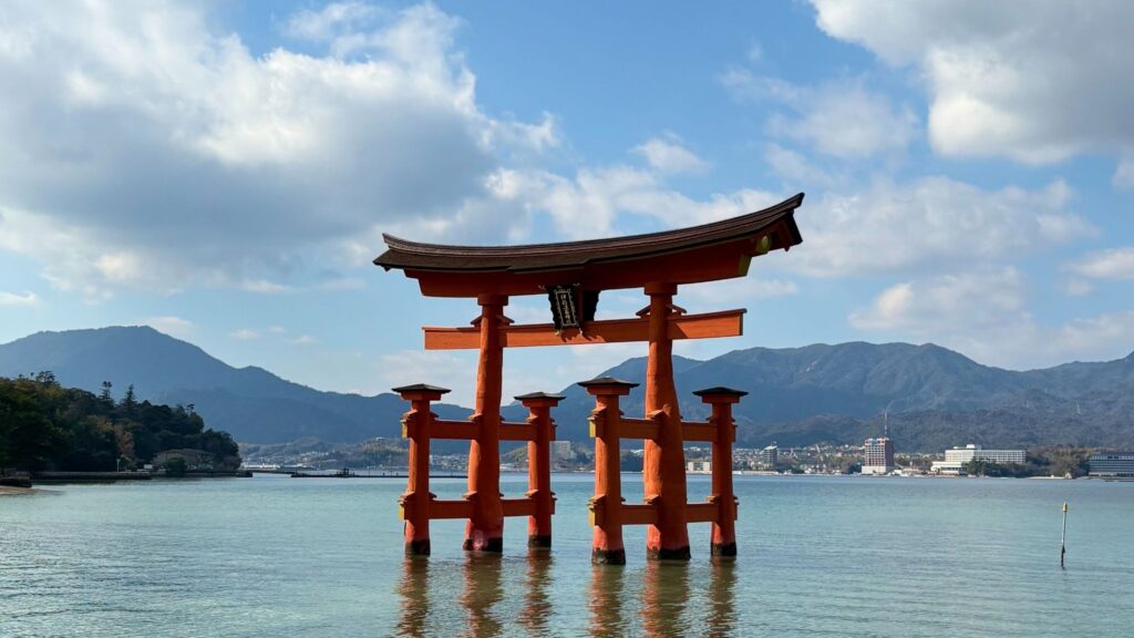 宮島の象徴ともいえるのが、海上にそびえる大鳥居と社殿で知られる厳島神社です。