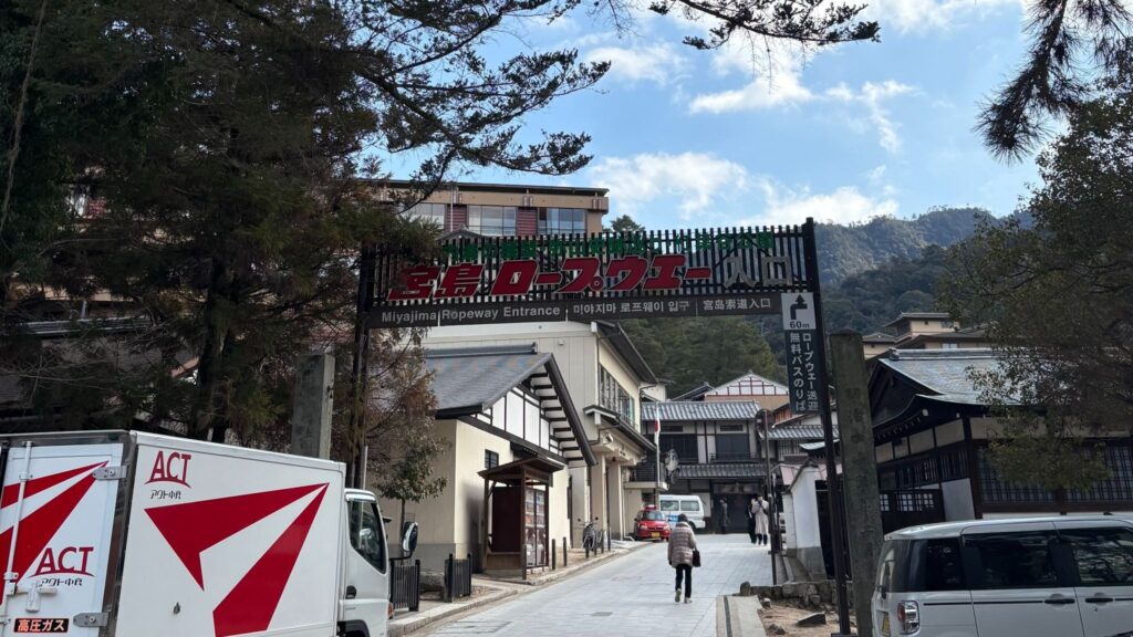 登山道を歩き、自然を感じながらゆっくりと登るのも魅力のひとつですが、体力に自信のない方や限られた時間で効率よく楽しみたい方には、宮島ロープウェイの利用がおすすめです。宮島ロープウェイは2つの区間で構成されており、紅葉谷駅から榧谷駅までは循環式ロープウェイで約10分、榧谷駅から獅子岩駅までは交走式ロープウェイで約4分の空中散歩を楽しむことができます。終点の獅子岩駅から弥山山頂までは、徒歩で約30〜40分ほど。原生林に囲まれた静かな山道を歩きながら、宮島の豊かな自然を間近に感じることができます。